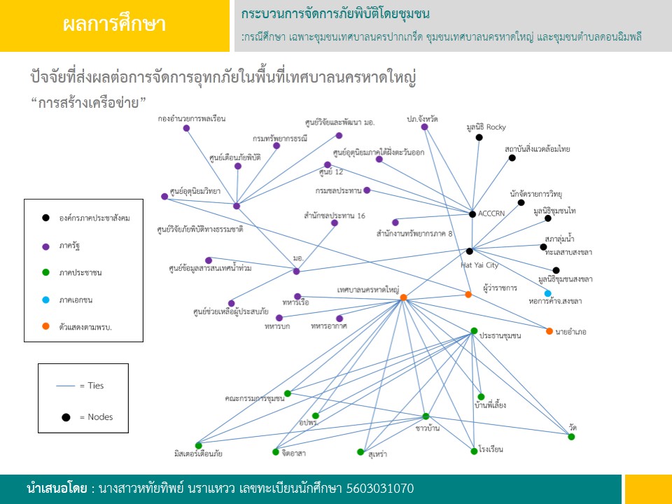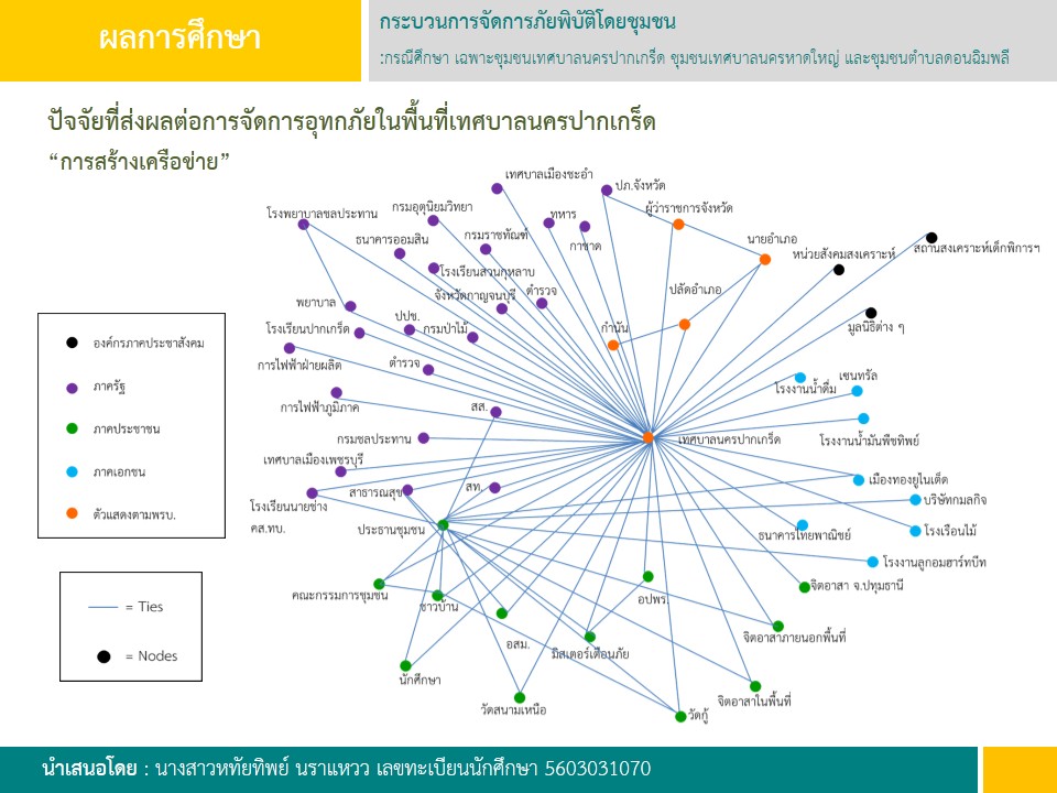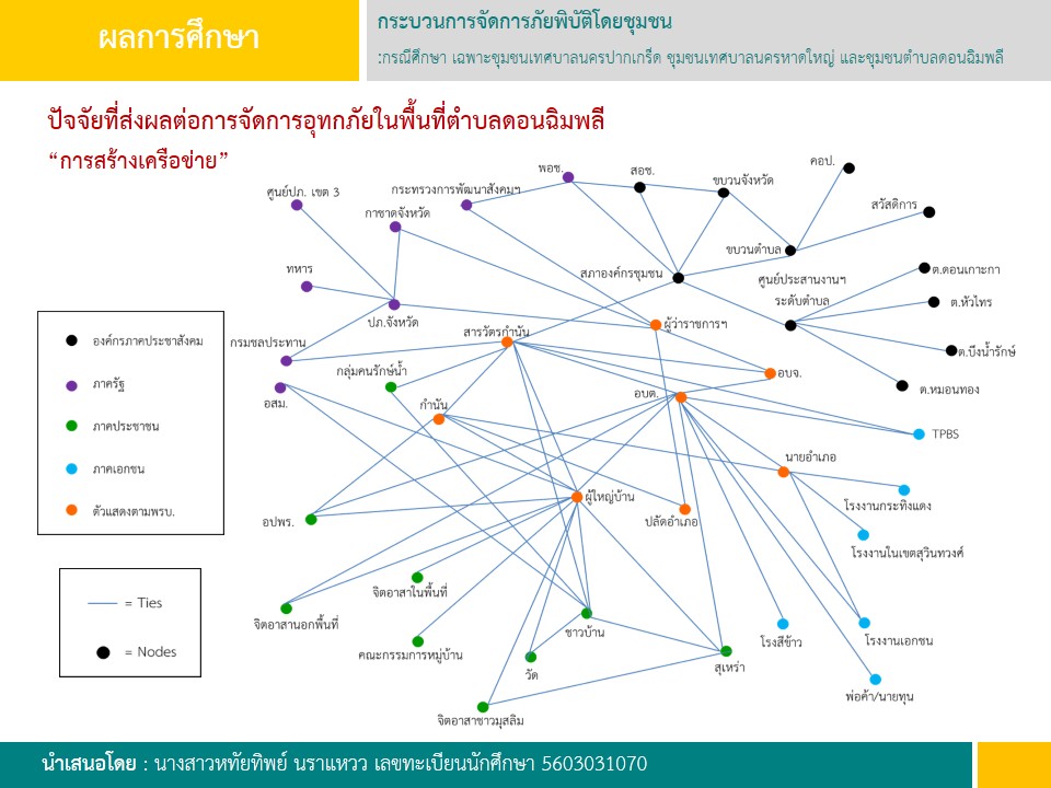 | Keyword | ภัยพิบัติ, การบริหารจัดการอุทกภัยโดยชุมชน, ชุมชนต้นแบบการจัดการภัยพิบัติจากอุทกภัย |