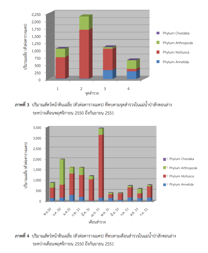 ความชุกชุมและความหลากหลายของสัตว์หน้าดินในแม่น้ำป่าสักตอนล่าง |