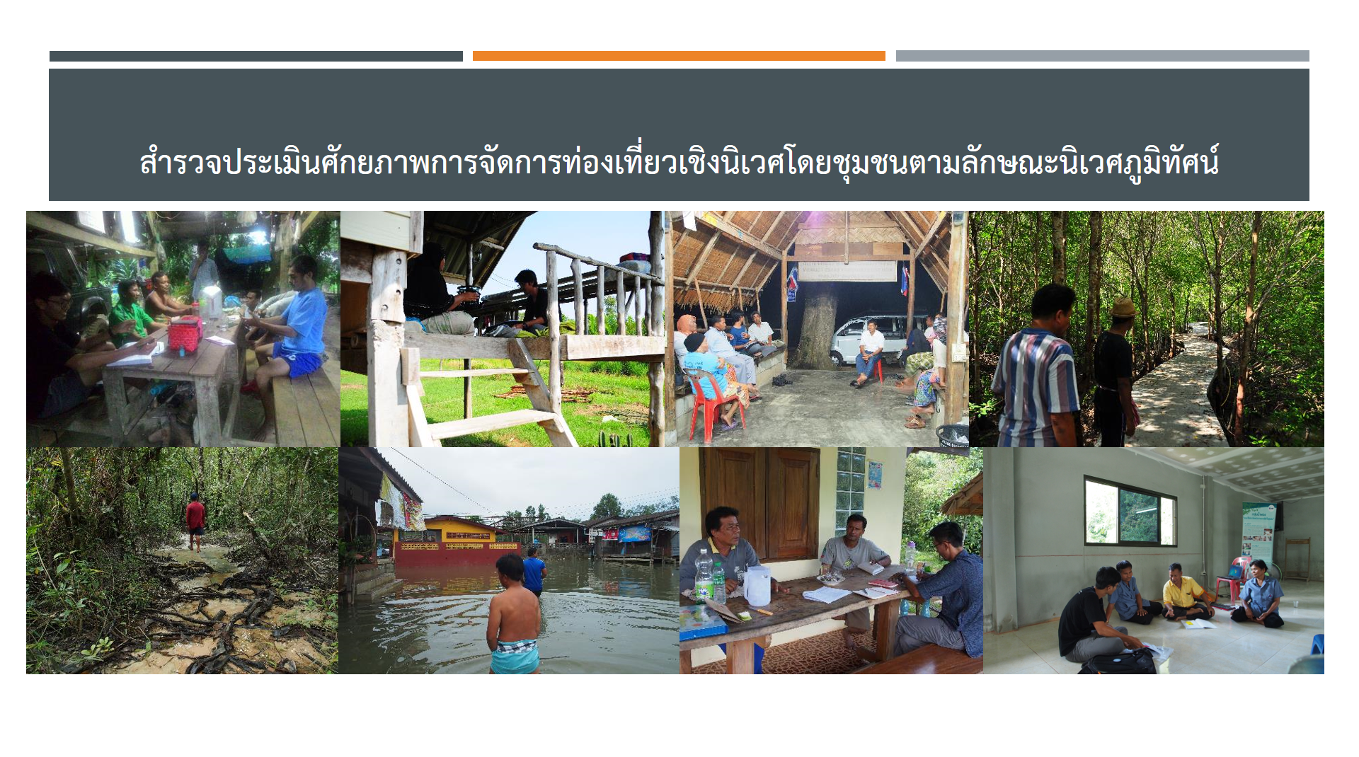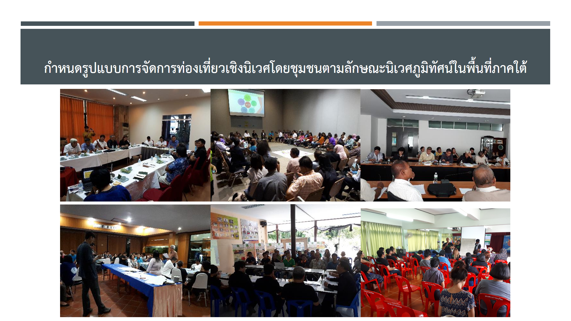 | Description | การศึกษาวิจัย มุ่งเน้นการศึกษาศักยภาพ องค์ประกอบและปัจจัยที่เกี่ยวข้อง และกำหนดรูปแบบการจัดการท่องเที่ยวเชิงนิเวศโดยชุมชนตามลักษณะนิเวศภูมิทัศน์ในพื้นที่ภาคใต้ของประเทศไทย เพื่อให้ทราบถึงสถานการณ์และพลวัตการเปลี่ยนแปลงด้านการพัฒนาการท่องเที่ยวเชิงนิเวศโดยชุมชนในพื้นที่ภาคใต้ และเพื่อก่อให้เกิดการยกระดับการพัฒนาทั้งในระดับพื้นที่และเชิงนโยบาย ภายใต้กรอบกระบวนการพัฒนาและจัดการในเชิงระบบ |