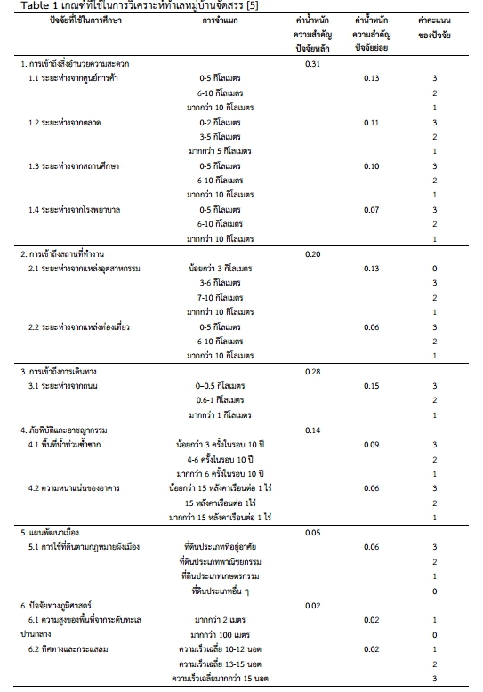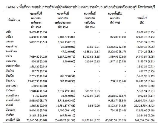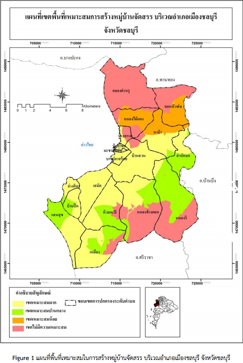| Description | หาทำเลที่เหมาะสมในการพัฒนาโครงการหมู่บ้านจัดสรร บริเวณอำเภอเมืองชลบุรี จังหวัดชลบุรี และศึกษาทัศนคติด้านการเลือกทำเลที่ตั้งหมู่บ้านจัดสรร ผลจากการวิเคราะห์จากระบบสารสนเทศ พบว่า พื้นที่เหมาะสมในการพัฒนาหมู่บ้านจัดสรรในระดับเหมาะสมมากมีพื้นที่มากที่สุดคิดเป็นร้อยละ 43.80 ของพื้นที่ทั้งหมด ระดับความเหมาะสมปานกลาง และเหมาะสมน้อยคิดเป็นพื้นที่ร้อยละ 21.32 และร้อยละ 8.67 ตามลำดับ พื้นที่ที่ไม่เหมาะสมในการพัฒนาหมู่บ้านจัดสรร คิดเป็นร้อยละ 26.22 ส่วนผลการศึกษาทัศนคติ ด้านการเลือกทำเลที่ตั้งหมู่บ้านจัดสรร ผลปัจจัยทั้งหมดมีความสอดคล้องกับทัศนคติ ด้านการเลือกทำเลที่ตั้งทางสถิติเท่ากับ 0.05 กลุ่มตัวอย่างเลือกปัจจัยการเข้าถึงสิ่งอำนวยความสะดวกมากที่สุด รองลงมา คือ การเข้าถึงการเดินทาง อันดับ3 การเข้าถึงสถานที่ทำงาน อันดับ 4 ด้านภัยพิบัติและอาชญากรรม อันดับ 5 ด้านกฎหมายผังเมือง และอันดับสุดท้ายปัจจัยทางภูมิศาสตร์ และผลการตรวจสอบความถูกต้องของแบบจำลอง ได้ค่าพยากรณ์ความถูกต้อง คิดเป็นร้อยละ 71.00 |