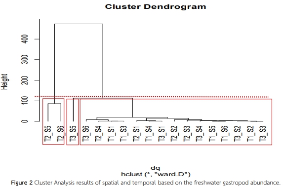 Description การศึกษานี้มีวัตถุประสงค์เพื่อศึกษาความชุกชุมของหอยน้ำจืดฝาเดียวและความสัมพันธ์กับคุณภาพน้ำบริเวณอ่างเก็บน้ำเขื่อนน้ำอูน ทำการสำรวจจำนวน 3 ครั้งในรอบปีตามฤดูกาล ระหว่างเดือนพฤศจิกายน 2556 ถึง เดือนตุลาคม 2557 พบหอยฝาเดียวน้ำจืด ทั้งหมด 583 ตัว จำแนกได้ 4 อันดับ ประกอบไปด้วย อันดับ Architaenioglossa, Neotaenioglossa, Basommatophora และ Pulmonata โดยพบทั้งหมด 8 ชนิด ได้แก่ Pomacea canaliculata, Filopaludina sumatrensis, Bithynia siamensis, Idiopoma sp., Pyrgulopsis sp., Lymnaea sp., Thiara sp., Indoplanorbis exustus. สัดส่วนความชุกชุมที่พบสูงสุดได้แก่ หอยไซจิ๋ว Idiopoma sp. ร้อยละ 58.14 จากการวิเคราะห์ความสัมพันธ์ระหว่างความชุกชุมและคุณภาพน้ำด้วย Co-inertia พบว่า ความชุกชุมของหอยไซจิ๋วมีความสัมพันธ์แปรผันตรงกับค่าความกระด้าง ส่วนความชุกชุมของหอยคัน (Thiara sp.) จะแปรผันตรงกับค่าการนำไฟฟ้า และหอยไซ (Bithynia siamensis) แปรผันตรงกับค่าความเป็นด่าง