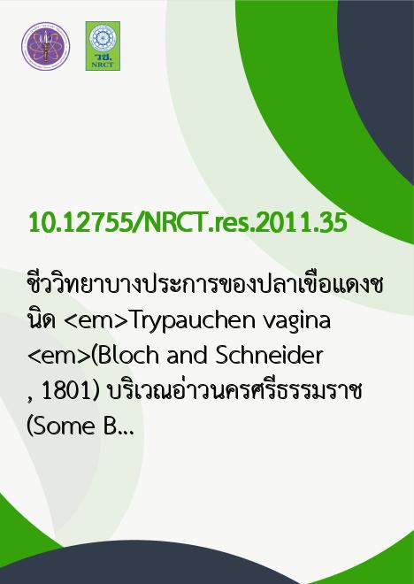Title ชีววิทยาบางประการของปลาเขือแดงชนิด Trypauchen vagina (Bloch and Schneider, 1801) บริเวณอ่าวนครศรีธรรมราช (Some Biological Aspects of Burrowing Goby (Trypauchen vagina (Bloch and Schneider, 1801)) in Nakhon Si Thammarat Bay)