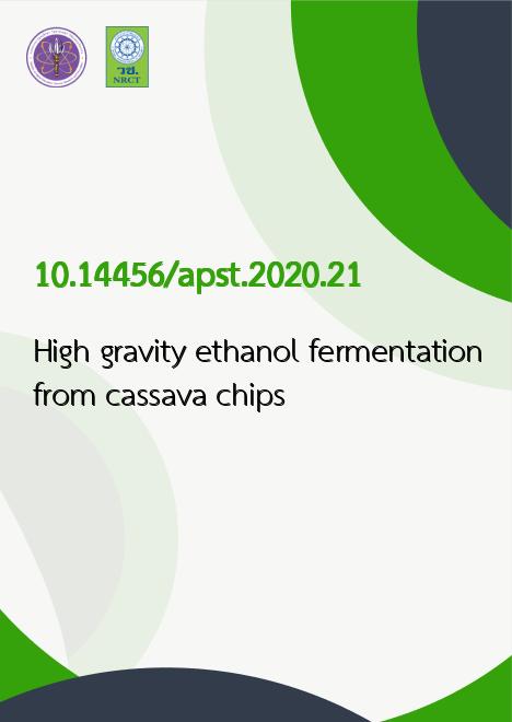 Abstract Very high gravity (VHG) ethanol fermentation has been developed to enhance productivity through higher ethanol concentration. The advantages of this technology offer great savings in process water and energy requirements through fermentation of higher concentrations of substrate, therefore, increased final ethanol concentration in the medium. The technology also allows increased fermentation capacity, without major alterations to existing facilities, by efficient utilization of fermenter space. In addition, ethanol production at high temperature has several advantages, such as reduced cooling costs and reduced risk of contaminations. Simultaneous saccharification and fermentation (SSF) of cassava chips under high gravity ethanol fermentation was studied. Cassava chips were ground into small granules and dissolved in water to reach 30% (w/w) of dry solid. Mash viscosity was reduced by the pretreatment with viscosity reduction enzyme. Starch in the pretreated mash was liquefied to maltodextrins by the action of thermo-stable - amylase (0.1%, w/w) at 85oC for 90 min. SSF of liquefied mash was performed at 35oC with the simultaneous addition of glucoamylase, thermotorelant yeast and 0.5 g/L of urea as a nitrogen source for the yeast. The optimal glucoamylase loading was 0.6% (w/w). Under these conditions, the SSF process finished after 60 h. The ethanol content achieved 117.17ฑ1.44 g/L or 14.85% (v/v) corresponding to 85.56% of the theoretical ethanol yield.