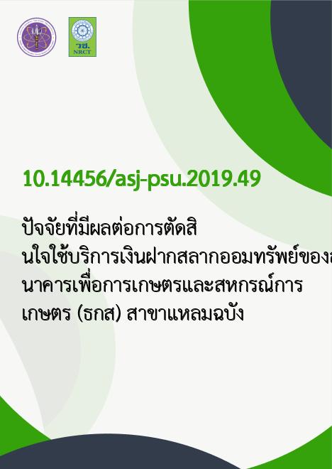 ปัจจัยที่มีผลต่อการตัดสินใจใช้บริการเงินฝากสลากออมทรัพย์ของลูกค้าธนาคารเพื่อการเกษตรและสหกรณ์การเกษตร (ธ.ก.ส.) สาขาแหลมฉบัง |