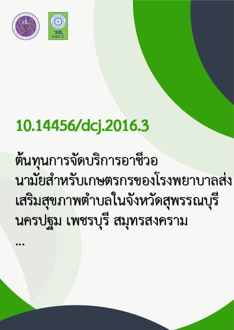 | Title | ต้นทุนการจัดบริการอาชีวอนามัยสำหรับเกษตรกรของโรงพยาบาลส่งเสริมสุขภาพตำบลในจังหวัดสุพรรณบุรี นครปฐม เพชรบุรี สมุทรสงคราม ประจวบคีรีขันธ์ |