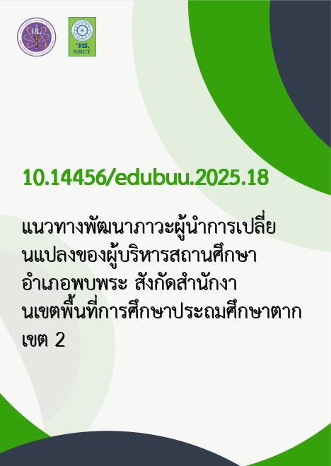 แนวทางพัฒนาภาวะผู้นำการเปลี่ยนแปลงของผู้บริหารสถานศึกษา อำเภอพบพระ สังกัดสำนักงานเขตพื้นที่การศึกษาประถมศึกษาตาก เขต 2 |