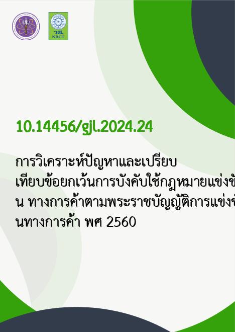 การวิเคราะห์ปัญหาและเปรียบเทียบข้อยกเว้นการบังคับใช้กฎหมายแข่งขัน ทางการค้าตามพระราชบัญญัติการแข่งขันทางการค้า พ.ศ. 2560 |