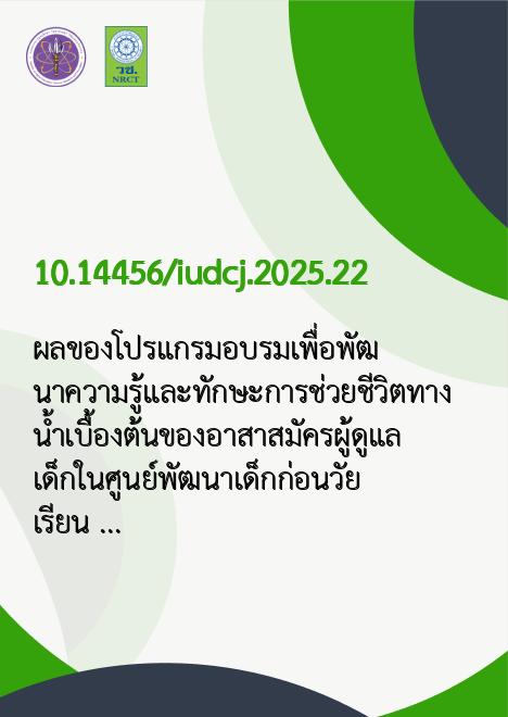 ผลของโปรแกรมอบรมเพื่อพัฒนาความรู้และทักษะการช่วยชีวิตทางน้ำเบื้องต้นของอาสาสมัครผู้ดูแลเด็กในศูนย์พัฒนาเด็กก่อนวัยเรียน เขตหนองจอก กรุงเทพมหานคร