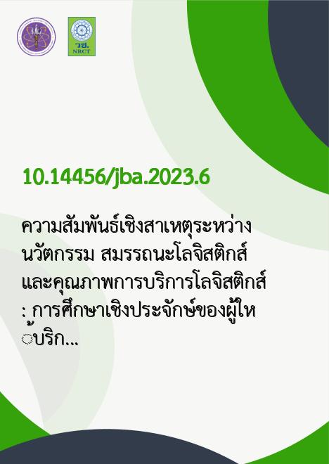 ความสัมพันธ์เชิงสาเหตุระหว่างนวัตกรรม สมรรถนะโลจิสติกส์ และคุณภาพการบริการโลจิสติกส์ : การศึกษาเชิงประจักษ์ของผู้ให้บริการโลจิสติกส์ไทย |