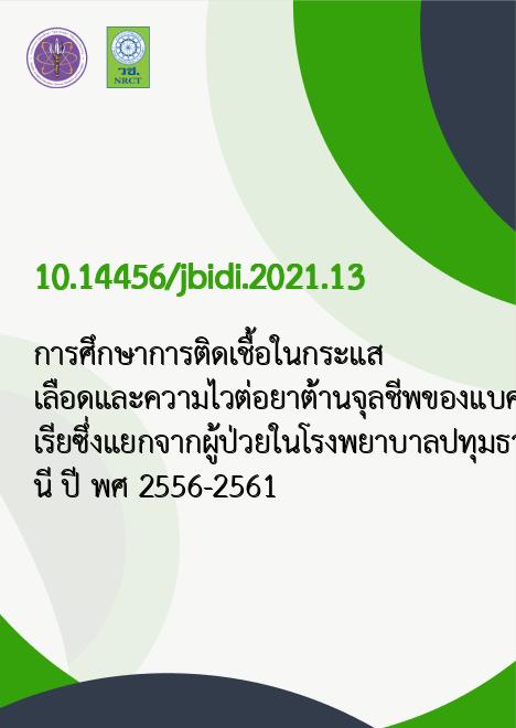 การศึกษาการติดเชื้อในกระแสเลือดและความไวต่อยาต้านจุลชีพของแบคทีเรียซึ่งแยกจากผู้ป่วยในโรงพยาบาลปทุมธานี ปี พ.ศ. 2556-2561 |