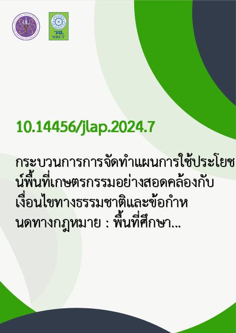 กระบวนการการจัดทำแผนการใช้ประโยชน์พื้นที่เกษตรกรรมอย่างสอดคล้องกับเงื่อนไขทางธรรมชาติและข้อกำหนดทางกฎหมาย : พื้นที่ศึกษา ตำบลยอด อำเภอสองแคว จังหวัดน่าน |