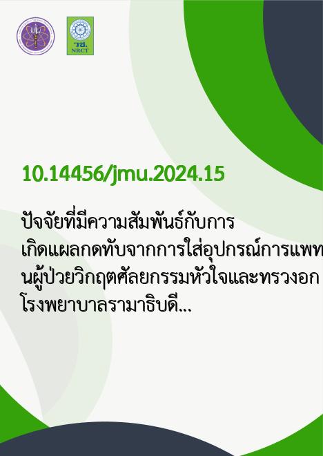 ปัจจัยที่มีความสัมพันธ์กับการเกิดแผลกดทับจากการใส่อุปกรณ์การแพทย์ในผู้ป่วยวิกฤตศัลยกรรมหัวใจและทรวงอก โรงพยาบาลรามาธิบดี มหาวิทยาลัยมหิดล |