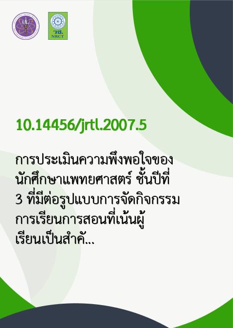 การประเมินความพึงพอใจของนักศึกษาแพทยศาสตร์ ชั้นปีที่ 3 ที่มีต่อรูปแบบการจัดกิจกรรม การเรียนการสอนที่เน้นผู้เรียนเป็นสำคัญ |