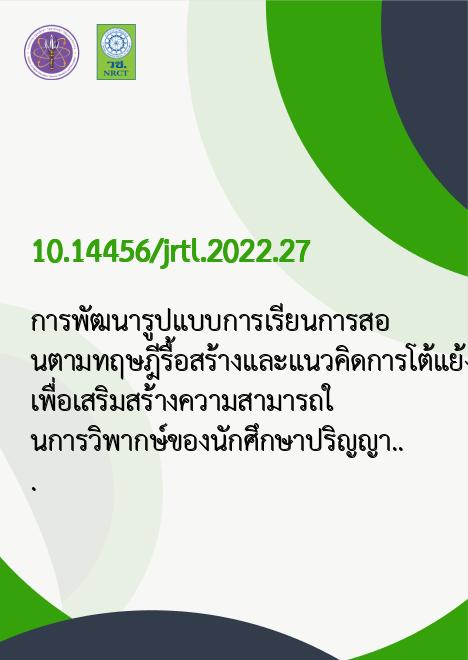 Keyword รูปแบบการเรียนการสอน, ทฤษฎีรื้อสร้าง, แนวคิดการโต้แย้ง, ความสามารถในการวิพากษ์, นักศึกษาปริญญาบัณฑิต