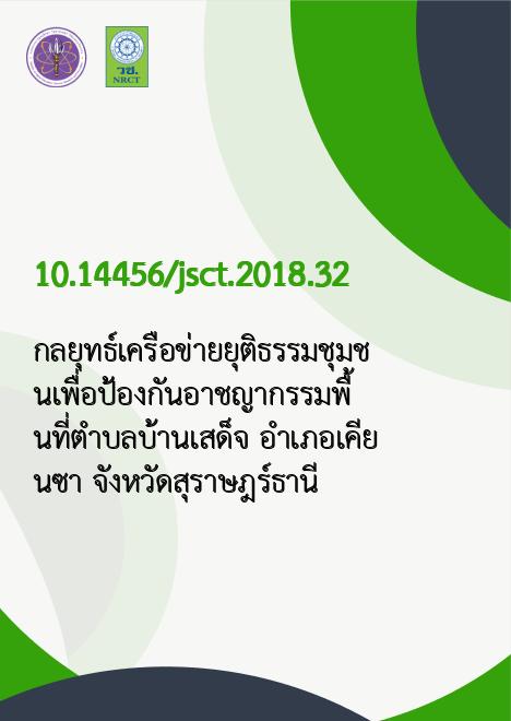 กลยุทธ์เครือข่ายยุติธรรมชุมชนเพื่อป้องกันอาชญากรรมพื้นที่ตำบลบ้านเสด็จ อำเภอเคียนซา จังหวัดสุราษฎร์ธานี |