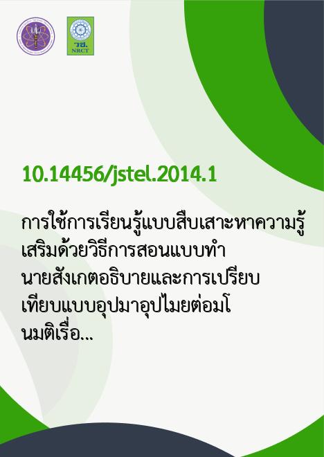 Abstract การวิจัยครั้งนี้มีจุดมุ่งหมายเพื่อศึกษาผลการใช้การเรียนรู้แบบสืบเสาะหาความรู้เสริมด้วยวิธีการสอนแบบทำนายสังเกตอธิบายและการเปรียบเทียบแบบอุปมาอุปไมยต่อมโนมติเรื่องวงจรไฟฟ้ากระแสตรงของครูวิทยาศาสตร์ระดับประถมศึกษา กลุ่มตัวอย่างคือครูที่สอนวิทยาศาสตร์ระดับชั้นประถมศึกษา จังหวัดอุดรธานี จำนวน 30 คน ที่อาสาเข้าร่วมกิจกรรมในเดือนสิงหาคม 2556 การจัดกิจกรรมประกอบด้วย 6 ขั้นตอนคือ (1) ทำนายความสว่างของหลอดไฟในสถานการณ์ต่าง ๆ เป็นรายบุคคล (2) แลก-เปลี่ยนและอภิปรายผลการทำนายกับเพื่อน (3) สังเกตความสว่างของหลอดไฟและบันทึกค่ากระแสและความต่างศักย์ในวงจร (4) อธิบายผลการค้นพบ (5) ทำนายความสว่างของหลอดไฟที่ต่อในวงจรแบบผสมผสานแล้วสังเกตและอภิปรายผลอีกครั้ง (6) เปรียบ-เทียบการไหลของกระแสไฟฟ้ากับการไหลของลูกบอล วิเคราะห์ข้อมูลด้วยสถิติพรรณนา และทดสอบไคสแควร์ ผลการวิเคราะห์ข้อมูล พบว่า ครูที่สอนตรงวุฒิกับไม่ตรงวุฒิหรือครูที่มีประสบการณ์สอนมากหรือน้อยมีมโนมติที่คลาดเคลื่อนเรื่องวงจรไฟฟ้ากระแสตรงไม่แตกต่างกัน มโนมติที่คลาดเคลื่อนของครูก่อนและหลังเข้าร่วมกิจกรรมมีการเปลี่ยนแปลงไปอย่างมีนัยสำคัญทางสถิติที่ระดับ .05 จากผลการศึกษาครั้งนี้สรุปได้ว่า การใช้การเรียนรู้แบบสืบเสาะหาความรู้เสริมด้วยวิธีการสอนแบบทำนายสังเกตอธิบายและการเปรียบเทียบแบบอุปมาอุปไมยช่วยทำให้ครูมีมโนมติที่คลาดเคลื่อนเรื่องวงจรไฟฟ้ากระแสตรงลดลง