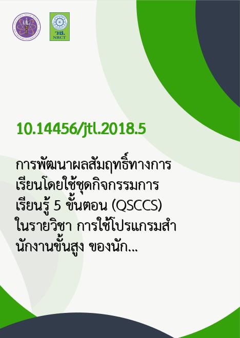 | Keyword | พัฒนาผลสัมฤทธิ์ทางการเรียนกิจกรรมการเรียนรู้ 5 ขั้นตอน (QSCCS), รายวิชาการใช้โปรแกรมสำนักงาน ขั้นสูง |
