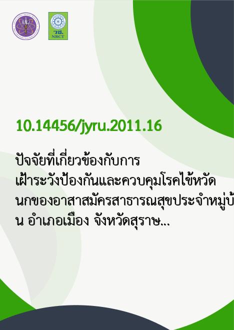 ปัจจัยที่เกี่ยวข้องกับการเฝ้าระวังป้องกันและควบคุมโรคไข้หวัดนกของอาสาสมัครสาธารณสุขประจำหมู่บ้าน อำเภอเมือง จังหวัดสุราษฎร์ธานี |