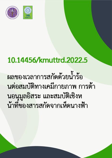 ผลของเวลาการสกัดด้วยน้ำร้อนต่อสมบัติทางเคมีกายภาพ การต้านอนุมูลอิสระ และสมบัติเชิงหน้าที่ของสารสกัดจากเห็ดนางฟ้า |