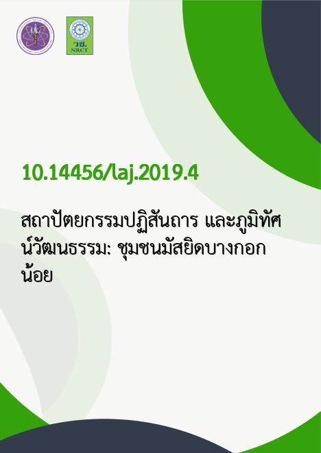 Keyword สถาปัตยกรรมปฏิสันถาร, พฤติกรรมมนุษย์, ภูมิทัศน์วัฒนธรรม, ชุมชนมุสลิมริมน้ำ