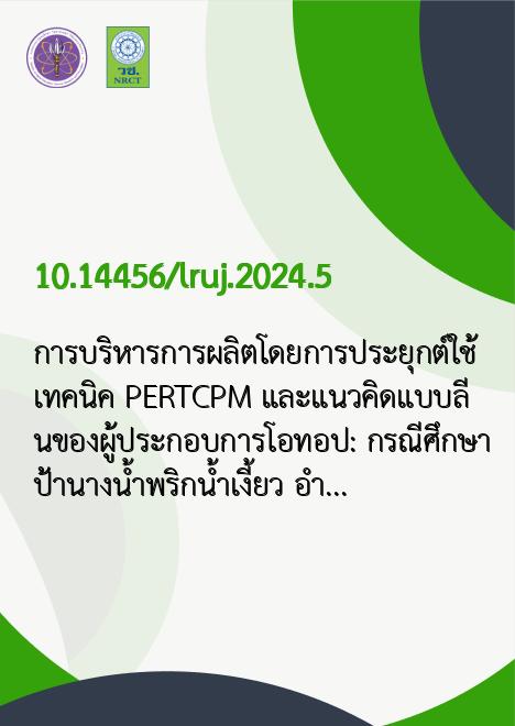 การบริหารการผลิตโดยการประยุกต์ใช้เทคนิค PERT/CPM และแนวคิดแบบลีนของผู้ประกอบการโอทอป: กรณีศึกษา ป้านางน้ำพริกน้ำเงี้ยว อำเภอเมืองเชียงราย จังหวัดเชียงราย |