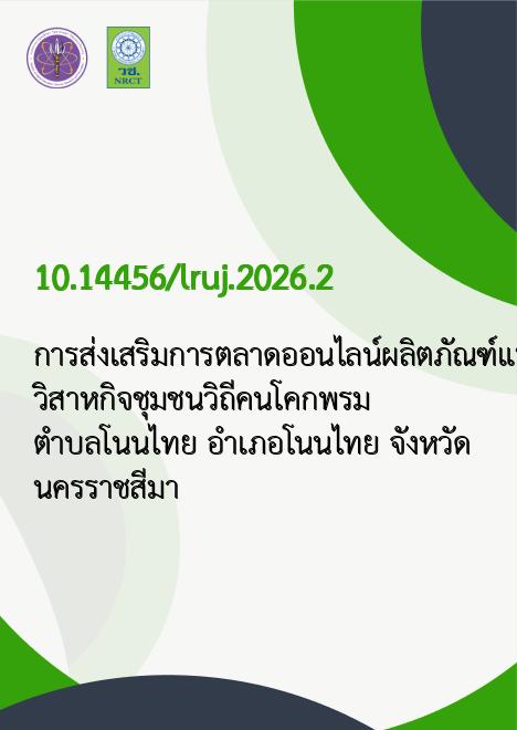| Title | การส่งเสริมการตลาดออนไลน์ผลิตภัณฑ์แปรรูปจากใยบวบ วิสาหกิจชุมชนวิถีคนโคกพรม ตำบลโนนไทย อำเภอโนนไทย จังหวัดนครราชสีมา |