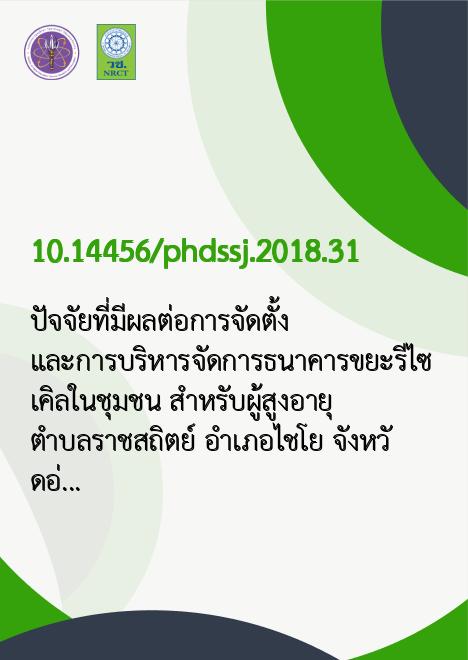 ปัจจัยที่มีผลต่อการจัดตั้ง และการบริหารจัดการธนาคารขยะรีไซเคิลในชุมชน สำหรับผู้สูงอายุ ตำบลราชสถิตย์ อำเภอไชโย จังหวัดอ่างทอง