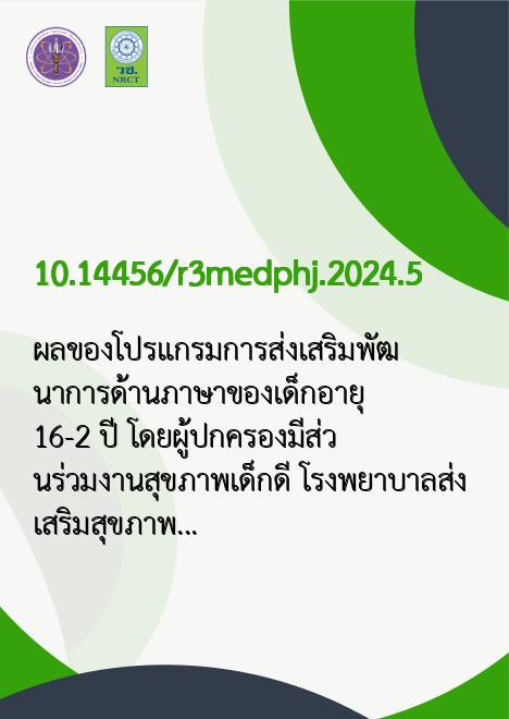 ผลของโปรแกรมการส่งเสริมพัฒนาการด้านภาษาของเด็กอายุ 1.6-2 ปี โดยผู้ปกครองมีส่วนร่วมงานสุขภาพเด็กดี โรงพยาบาลส่งเสริมสุขภาพ ศูนย์อนามัย ที่ 3 นครสวรรค์ |