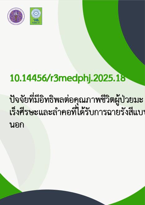 ปัจจัยที่มีอิทธิพลต่อคุณภาพชีวิตผู้ป่วยมะเร็งศีรษะและลำคอที่ได้รับการฉายรังสีแบบผู้ป่วยนอก |