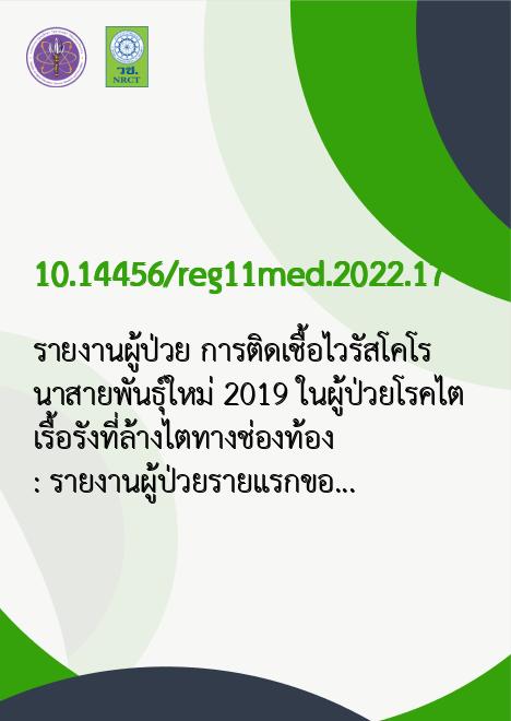 รายงานผู้ป่วย การติดเชื้อไวรัสโคโรนาสายพันธุ์ใหม่ 2019 ในผู้ป่วยโรคไตเรื้อรังที่ล้างไตทางช่องท้อง: รายงานผู้ป่วยรายแรกของประเทศไทย