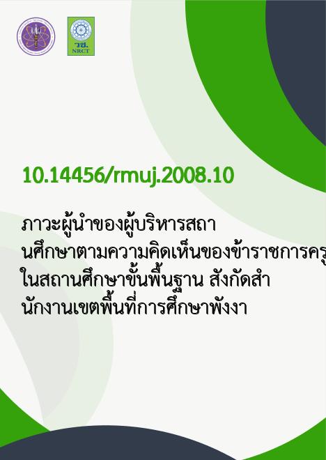 ภาวะผู้นำของผู้บริหารสถานศึกษาตามความคิดเห็นของข้าราชการครู ในสถานศึกษาขั้นพื้นฐาน สังกัดสำนักงานเขตพื้นที่การศึกษาพังงา |