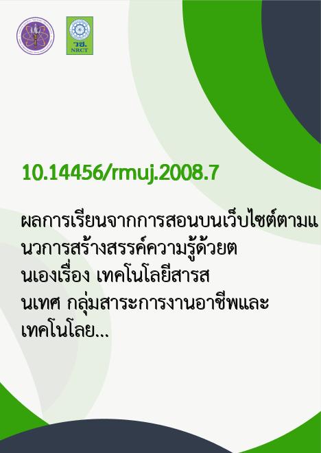 Title ผลการเรียนจากการสอนบนเว็บไซต์ตามแนวการสร้างสรรค์ความรู้ด้วยตนเองเรื่อง เทคโนโลยีสารสนเทศ กลุ่มสาระการงานอาชีพและเทคโนโลยีชั้นมัธยมศึกษาปีที่ 2 ระหว่างการเรียนเป็นรายบุคคลกับการเรียนเป็นกลุ่มย่อย
