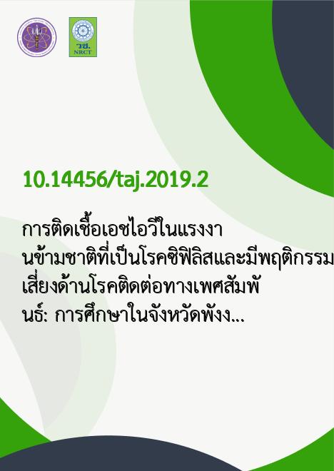 การติดเชื้อเอชไอวีในแรงงานข้ามชาติที่เป็นโรคซิฟิลิสและมีพฤติกรรมเสี่ยงด้านโรคติดต่อทางเพศสัมพันธ์: การศึกษาในจังหวัดพังงา |