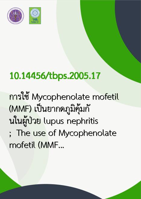 การใช้ Mycophenolate mofetil (MMF) เป็นยากดภูมิคุ้มกันในผู้ป่วย lupus nephritis ; The use of Mycophenolate mofetil (MMF) as immunosuppressive agents in Lupus nephritis patients |