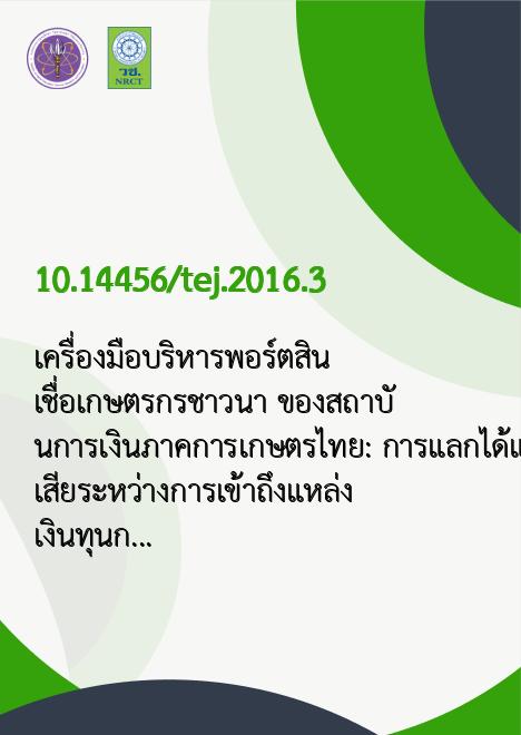 เครื่องมือบริหารพอร์ตสินเชื่อเกษตรกรชาวนา ของสถาบันการเงินภาคการเกษตรไทย: การแลกได้แลกเสียระหว่างการเข้าถึงแหล่งเงินทุนกับประสิทธิภาพการดำเนินงาน |