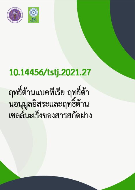 | Title | ฤทธิ์ต้านแบคทีเรีย ฤทธิ์ต้านอนุมูลอิสระและฤทธิ์ต้านเซลล์มะเร็งของสารสกัดฝาง |