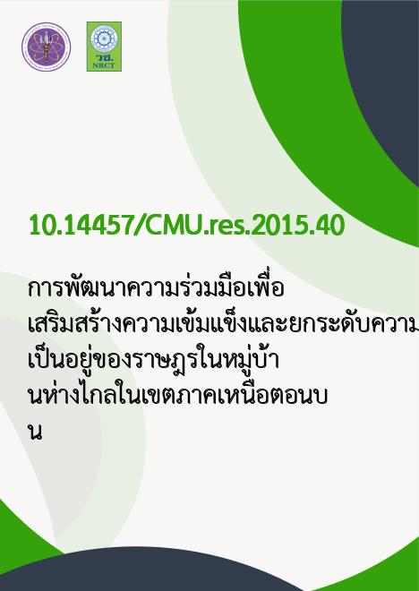 | Title | การพัฒนาความร่วมมือเพื่อเสริมสร้างความเข้มแข็งและยกระดับความเป็นอยู่ของราษฎรในหมู่บ้านห่างไกลในเขตภาคเหนือตอนบน |