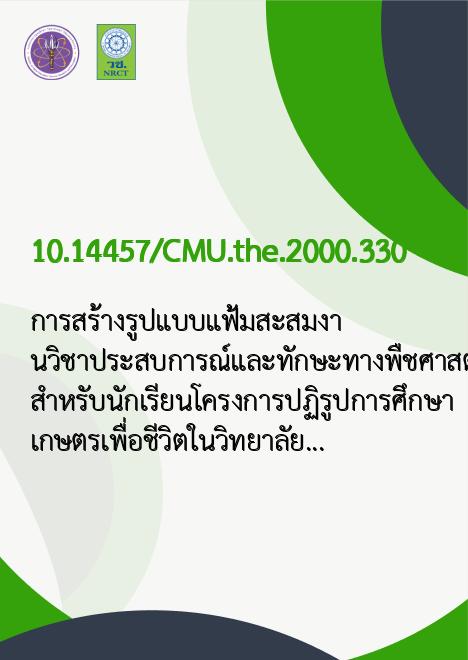 | Title | การสร้างรูปแบบแฟ้มสะสมงานวิชาประสบการณ์และทักษะทางพืชศาสตร์ สำหรับนักเรียนโครงการปฏิรูปการศึกษาเกษตรเพื่อชีวิตในวิทยาลัยเกษตรและเทคโนโลยีเชียงใหม่ |