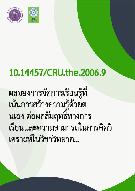 ผลของการจัดการเรียนรู้ที่เน้นการสร้างความรู้ด้วยตนเอง ต่อผลสัมฤทธิ์ทางการเรียนและความสามารถในการคิดวิเคราะห์ในวิชาวิทยาศาสตร์ ของนักเรียนช่วงชั้นที่ 3 ชั้นปีที่ 1 |
