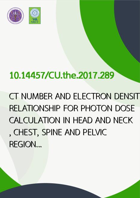| Title | CT NUMBER AND ELECTRON DENSITY RELATIONSHIP FOR PHOTON DOSE CALCULATION IN HEAD AND NECK, CHEST, SPINE AND PELVIC REGIONS |