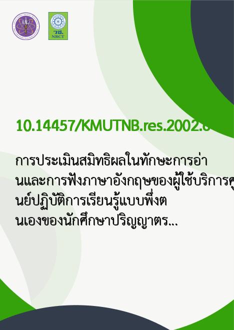 | Title | การประเมินสมิทธิผลในทักษะการอ่านและการฟังภาษาอังกฤษของผู้ใช้บริการศูนย์ปฏิบัติการเรียนรู้แบบพึ่งตนเองของนักศึกษาปริญญาตรีชั้นปีที่ 1 สถาบันเทคโนโลยีพระจอมเกล้าพระนครเหนือ / |