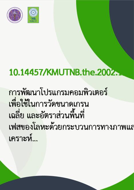 Title การพัฒนาโปรแกรมคอมพิวเตอร์เพื่อใช้ในการวัดขนาดเกรนเฉลี่ย และอัตราส่วนพื้นที่เฟสของโลหะด้วยกระบวนการทางภาพและการวิเคราะห์ภาพ /
