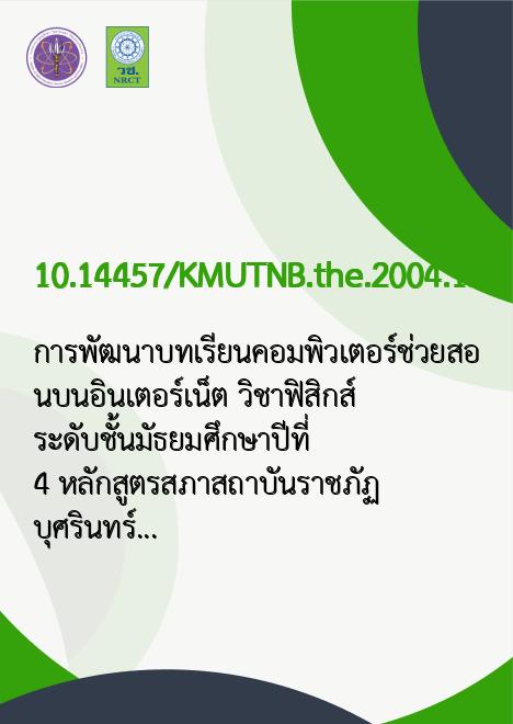 การพัฒนาบทเรียนคอมพิวเตอร์ช่วยสอนบนอินเตอร์เน็ต วิชาฟิสิกส์ ระดับชั้นมัธยมศึกษาปีที่ 4 หลักสูตรสภาสถาบันราชภัฏ /บุศรินทร์ เอี่ยมธนากุล