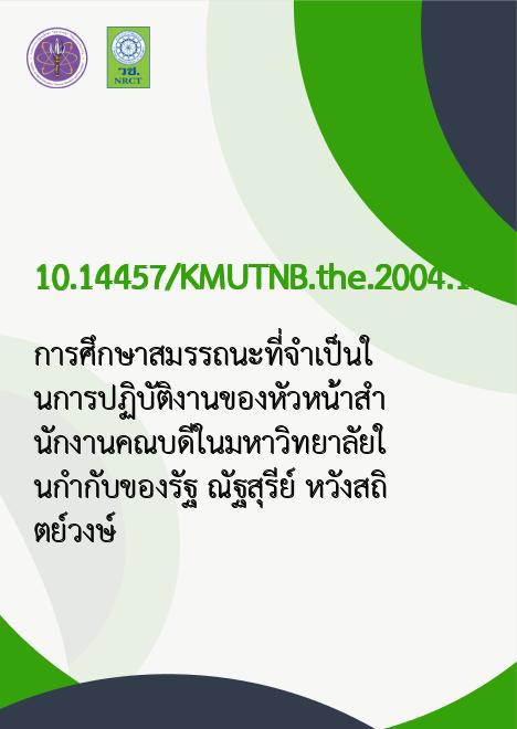 | Keyword | สมรรถนะ, หัวหน้าสำนักงานคณบดี, มหาวิทยาลัยในกำกับของรัฐ |