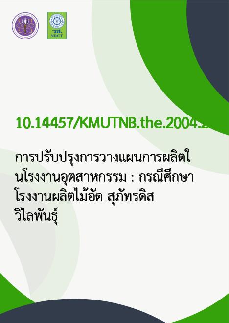 | Title | การปรับปรุงการวางแผนการผลิตในโรงงานอุตสาหกรรม : กรณีศึกษา โรงงานผลิตไม้อัด / |