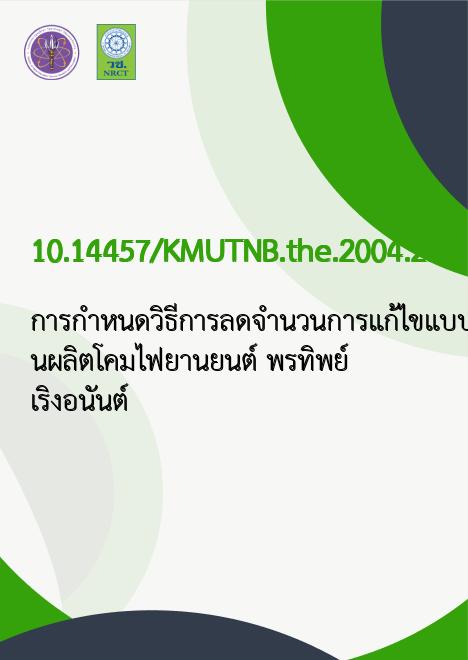 การกำหนดวิธีการลดจำนวนการแก้ไขแบบผลิตภัณฑ์กรณีศึกษาโรงงานผลิตโคมไฟยานยนต์ /พรทิพย์ เริงอนันต์ |