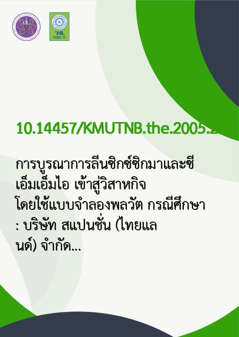 Title การบูรณาการลีนซิกซ์ซิกมาและซีเอ็มเอ็มไอ เข้าสู่วิสาหกิจ โดยใช้แบบจำลองพลวัต กรณีศึกษา : บริษัท สแปนชั่น (ไทยแลนด์) จำกัด /