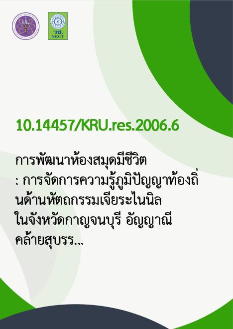 Title การพัฒนาห้องสมุดมีชีวิต : การจัดการความรู้ภูมิปัญญาท้องถิ่นด้านหัตถกรรมเจียระไนนิล ในจังหวัดกาญจนบุรี /