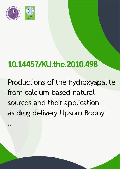 Productions of the hydroxyapatite from calcium based natural sources and their application as drug delivery /Upsorn Boonyang
