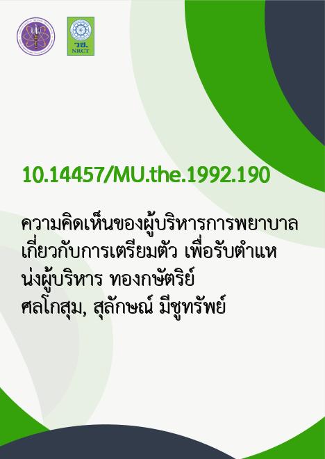 | Title | ความคิดเห็นของผู้บริหารการพยาบาล เกี่ยวกับการเตรียมตัว เพื่อรับตำแหน่งผู้บริหาร / |